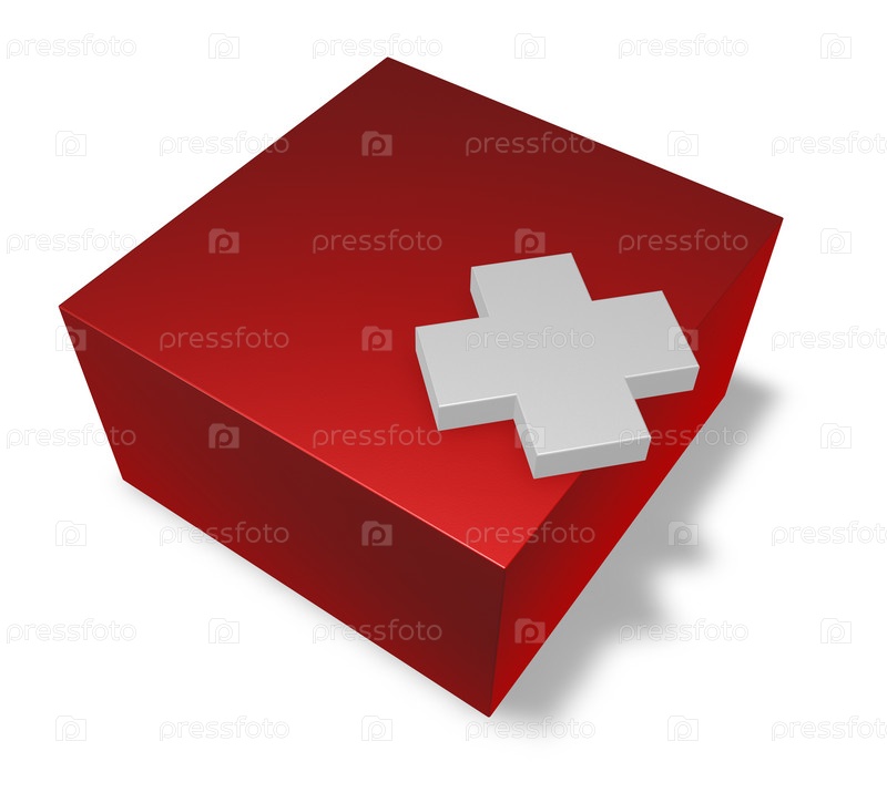 Кусочки флага Швейцарии на белом фоне. Трехмерная иллюстрация