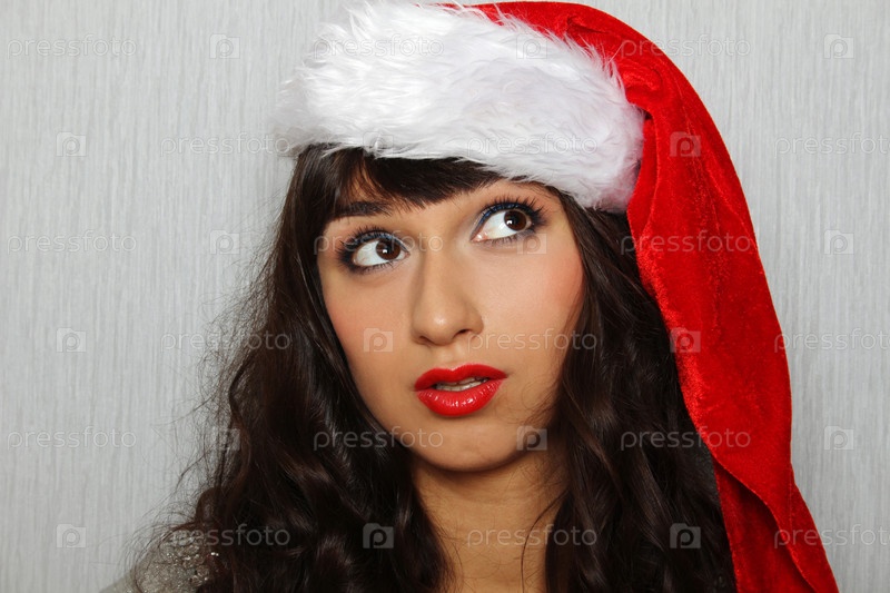 Портрет молодой девушки Санта-Клауса