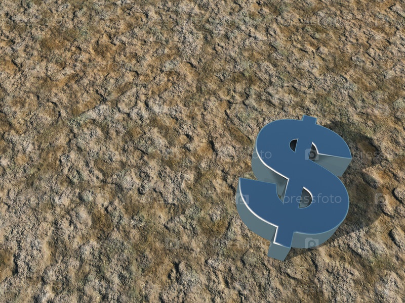Металлический символ доллара на каменной поверхности - 3d иллюстрация