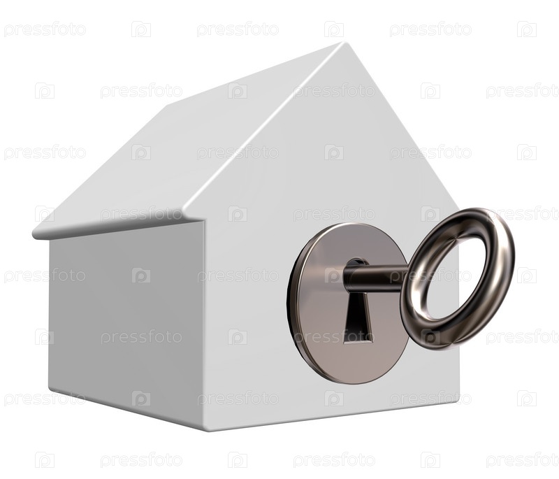 Модель дома с замковым отверстием и ключом - 3d иллюстрация
