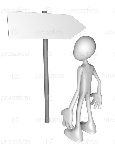 Белый человек и указатель - 3D иллюстрация