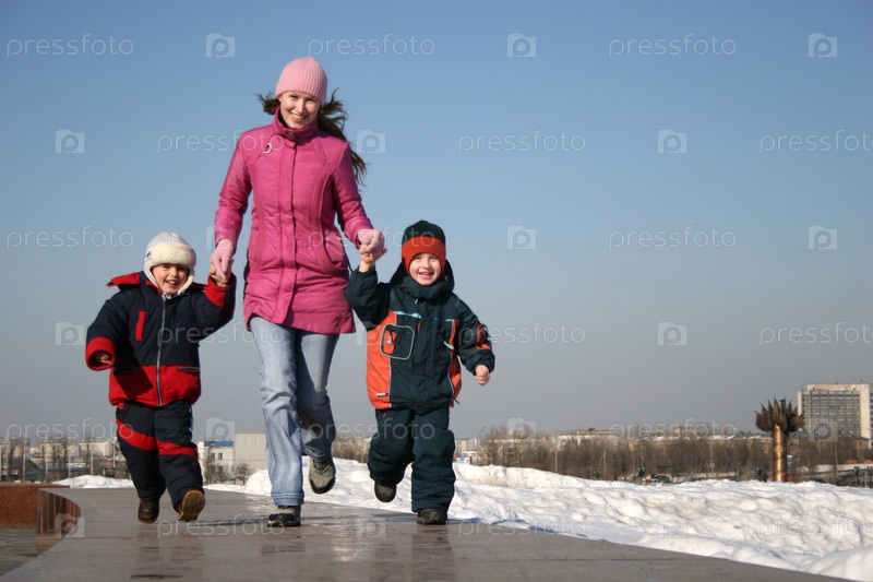 Мать с бегущими детьми