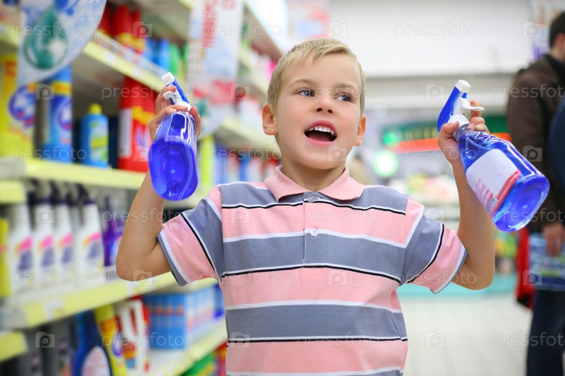 Мальчик в магазине в отделе бытовой химии