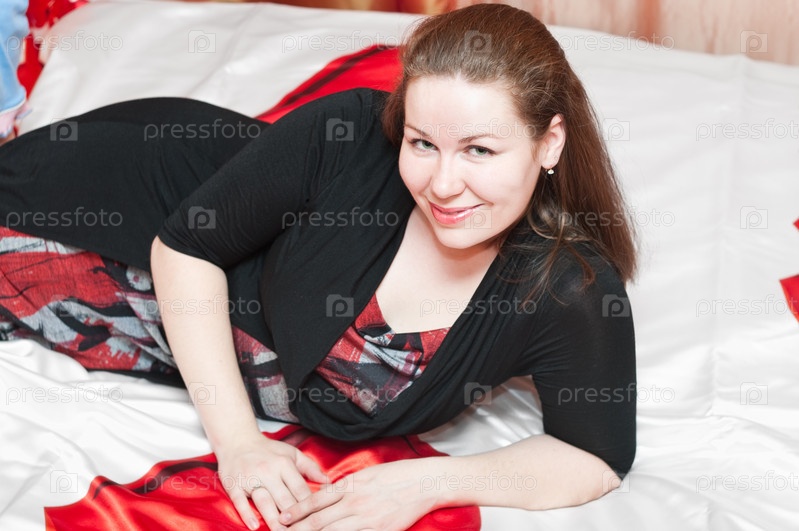 Красивая молодая женщина, лежащая на кровати в спальне