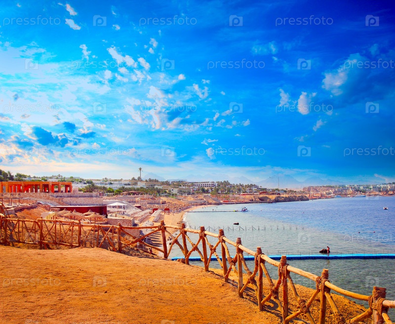 Берег моря и солнечное небо, красивый пейзаж