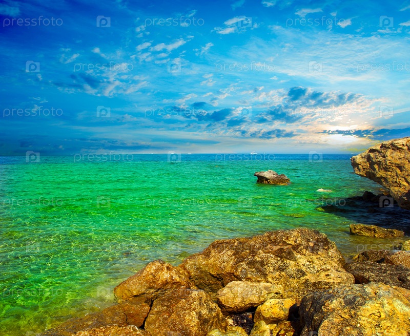 Берег моря и солнечное небо, красивый пейзаж