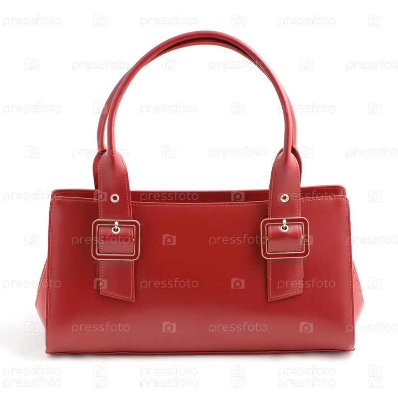 Красная кожаная дамская сумочка на белом фоне