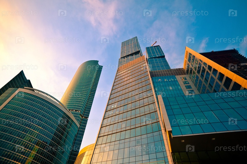 Современные небоскребы в бизнес-центре Москвы на закате