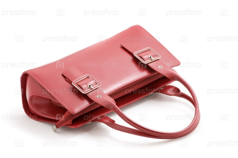 Красная кожаная дамская сумочка на белом фоне