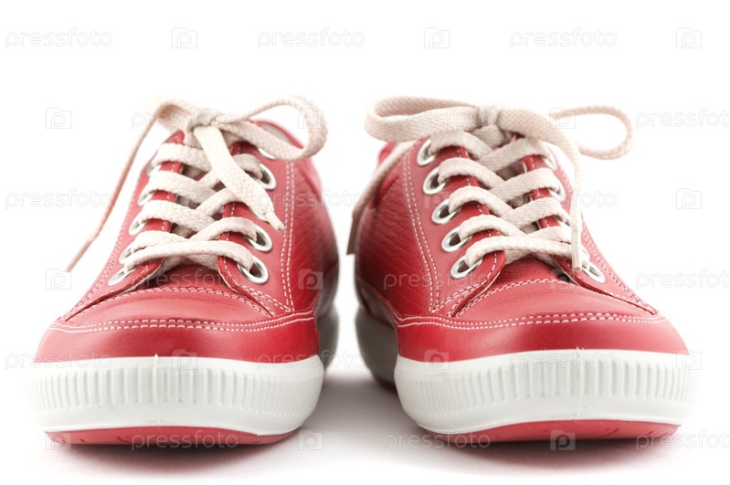 Красные кожаные кроссовки на белом фоне