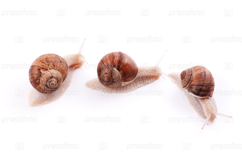 Садовая улитка на белом фоне