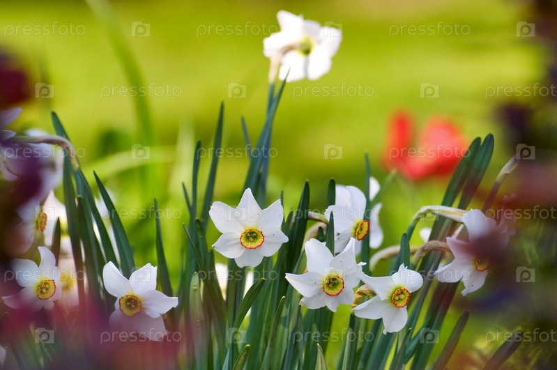 Белые нарциссы на земле в дневном свете