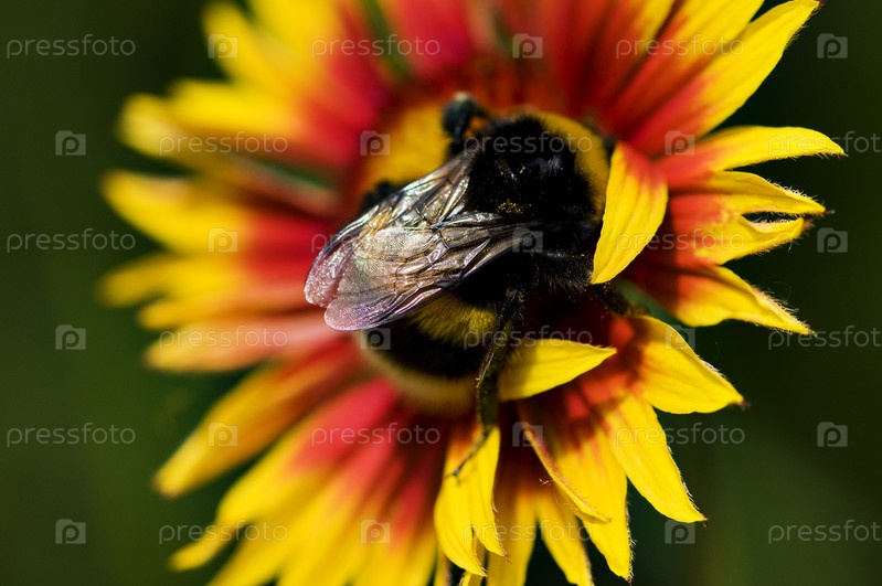 Большой шмель на красно-желтом цветке