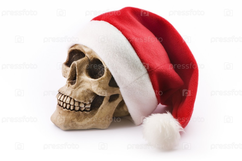 Череп в шапке Санта-Клауса