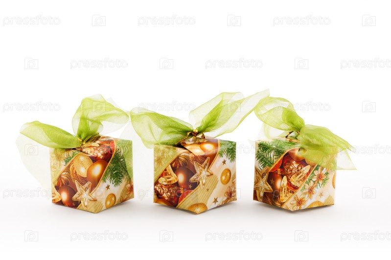 Рождественские украшения, коробки с зелеными лентами