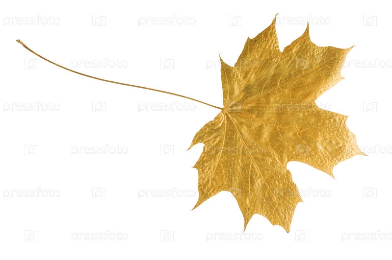 Золотой кленовый лист на белом фоне