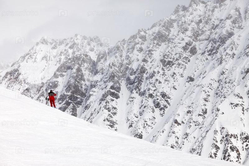 Лыжник на вершине горы