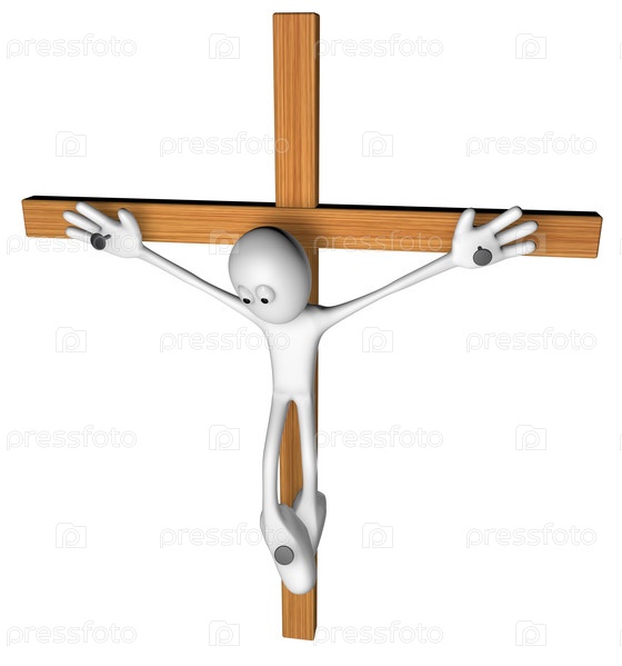 Белый человек прибитый к деревянному кресту - 3d иллюстрация