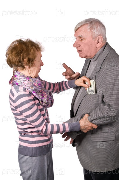 Пожилая пара Жена забирает у мужа деньги