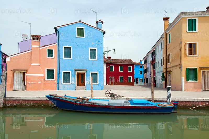 Красочные дома и каналы острова Бурано, Италия