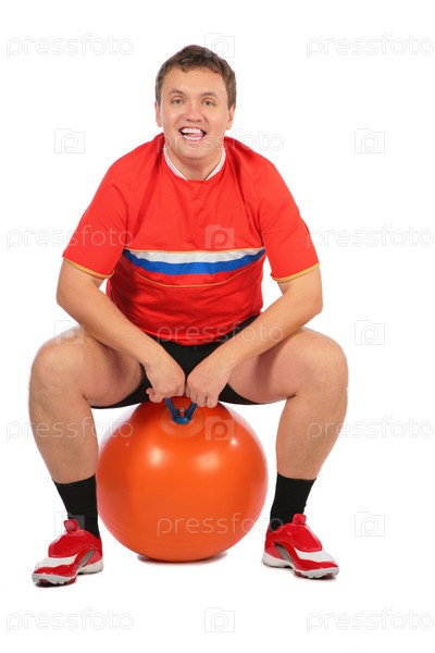 Мужчина прыгает на мяче для фитнеса