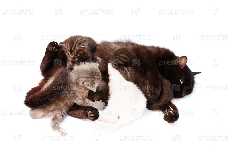 Кошка, кормящая маленьких котят