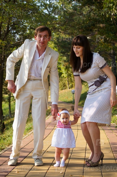 Молодая счастливая семья на прогулке