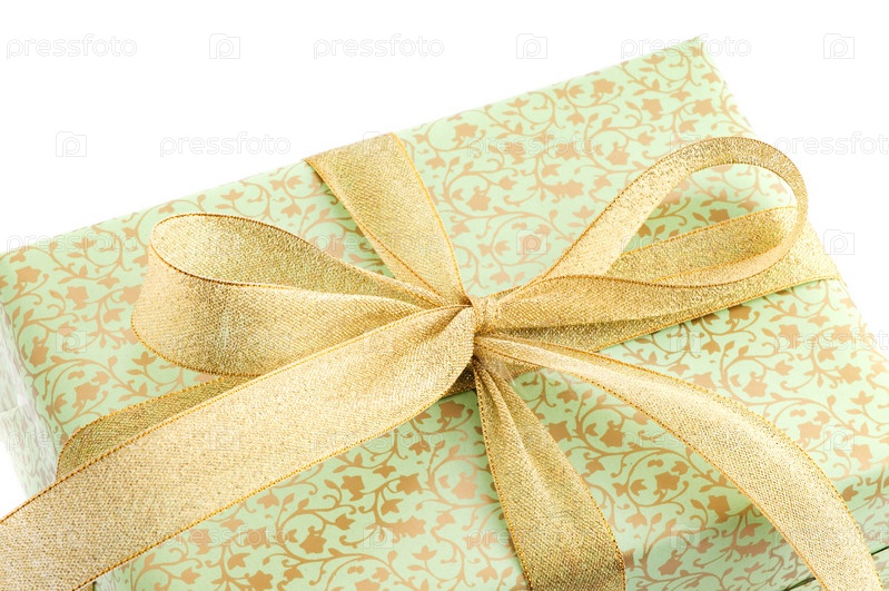 Зеленый подарок с золотой лентой