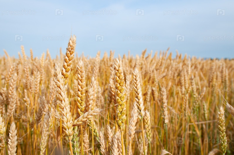 Желтое зерно, готовое к жатве, растущее на сельскохозяйственном поле