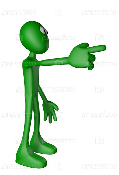 Зеленый человечек указывает на что-то - 3D иллюстрация