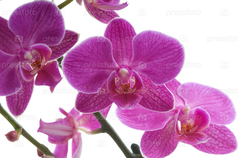 Ветвь орхидеи, phalaenopsis, на белом фоне