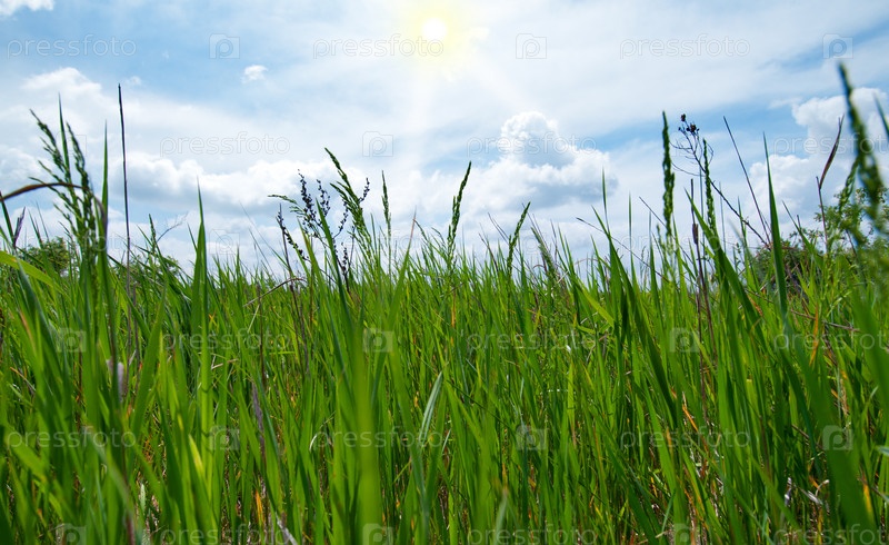 Зеленая трава и синее небо