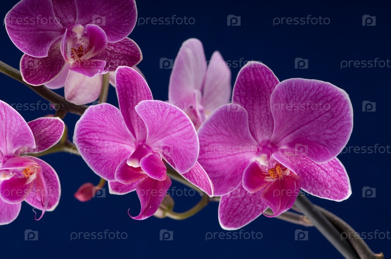 Ветвь орхидеи, phalaenopsis, на синем фоне
