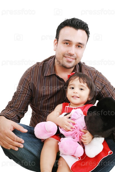 Улыбающиеся отец и дочь, изолированные на белом фоне