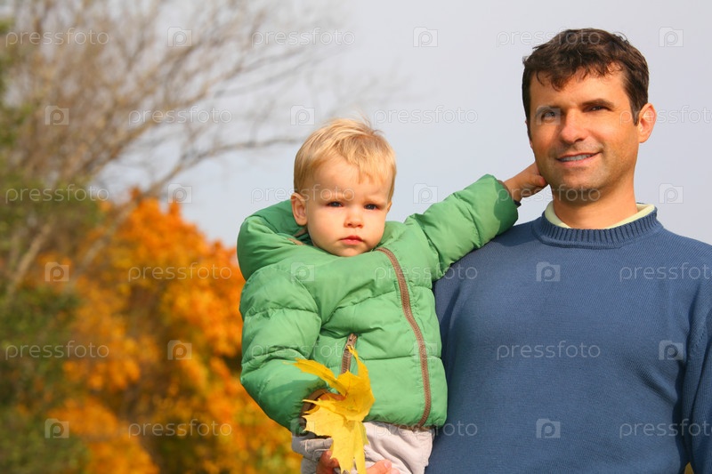 Мужчина и мальчик в осеннем парке