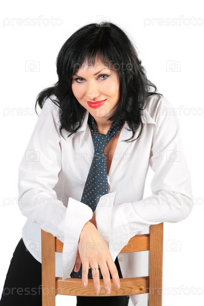 Портрет брюнетки, на белом фоне