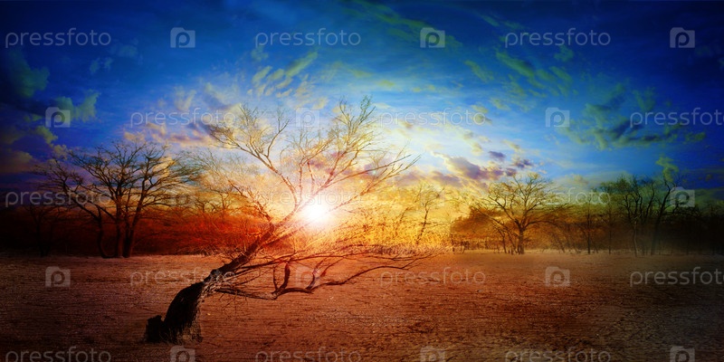 Старое сухое дерево на песке в пустыне