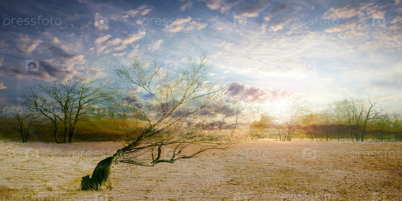 Старое сухое дерево на песке в пустыне