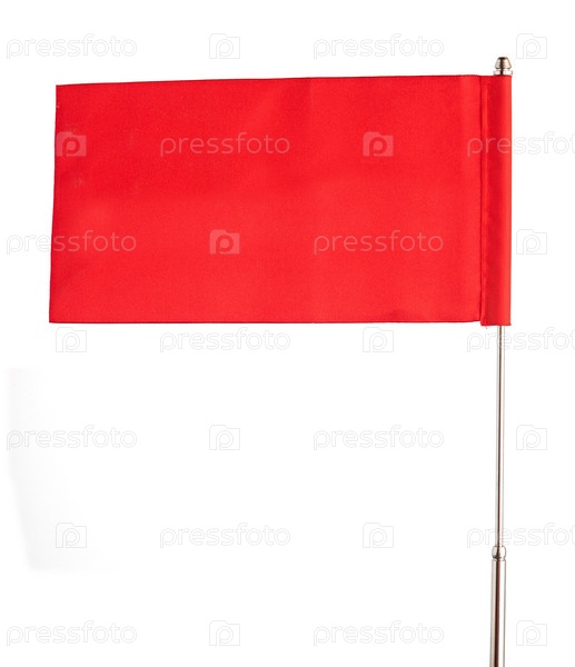Красный флаг развевается на ветру. Изолировано на белом. Разместите ваш собственный текст