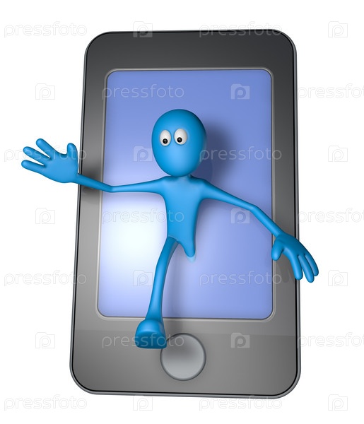 Синий человек и смартфон - 3D иллюстрация