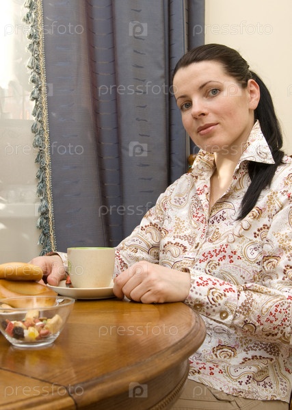 Женщина за столом в гостиной