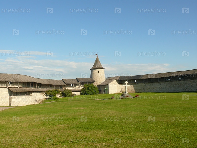 Башня и стены Псковского Крома. Вид Изнутри