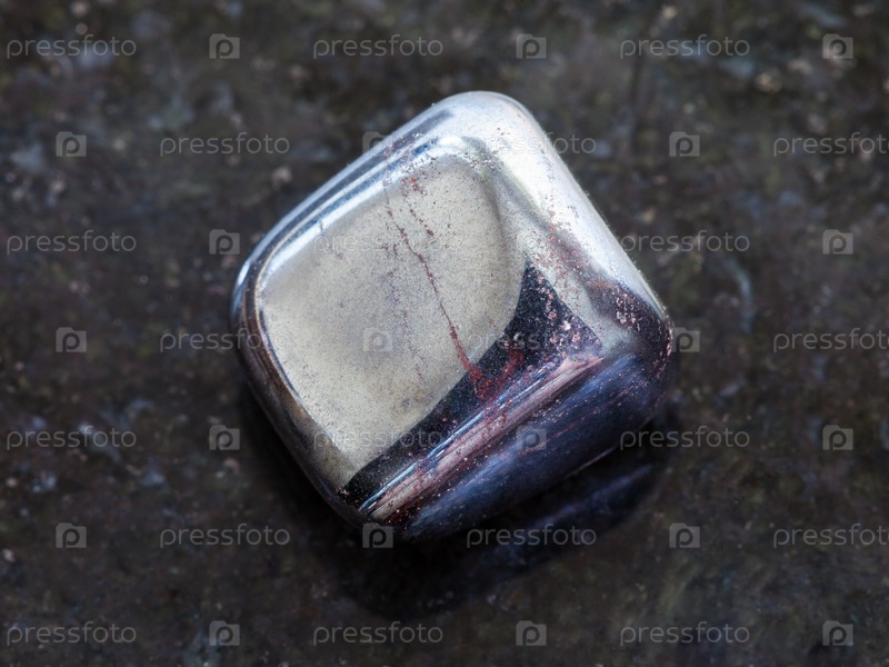 Полированный гематит камень на темном фоне