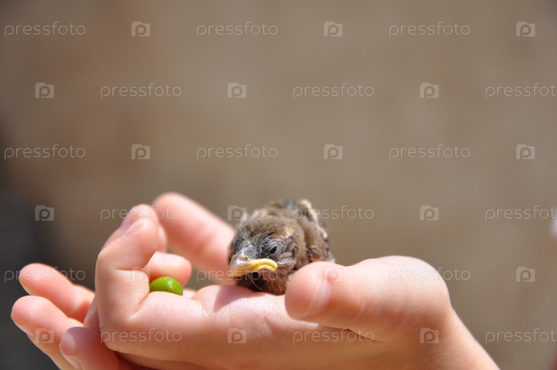 Птенец в руке ребенка