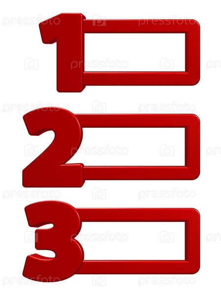Цифры 1, 2, 3 с рамками на белом фоне. 3d иллюстрация