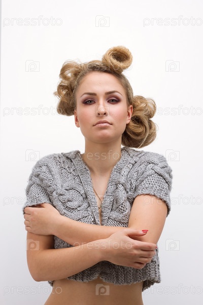 красивая блондинка в зимнем свитере
