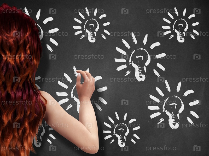 Лампочки на доске и девушка