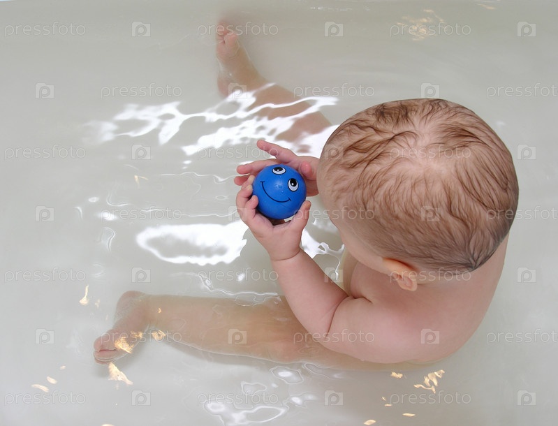Малыш с улыбкой игрушки в ванной