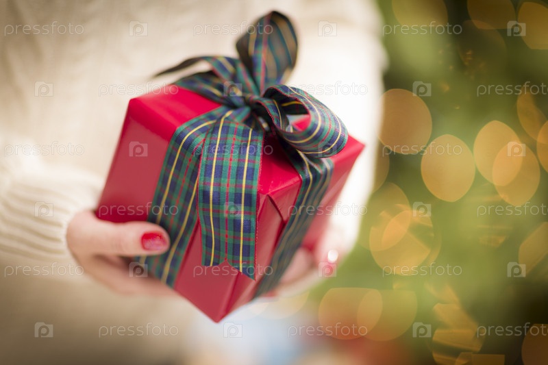 Женщина держит Рождественский подарок