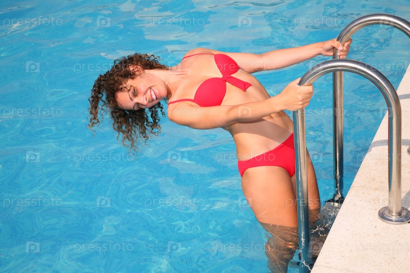Девушка выходит из бассейна